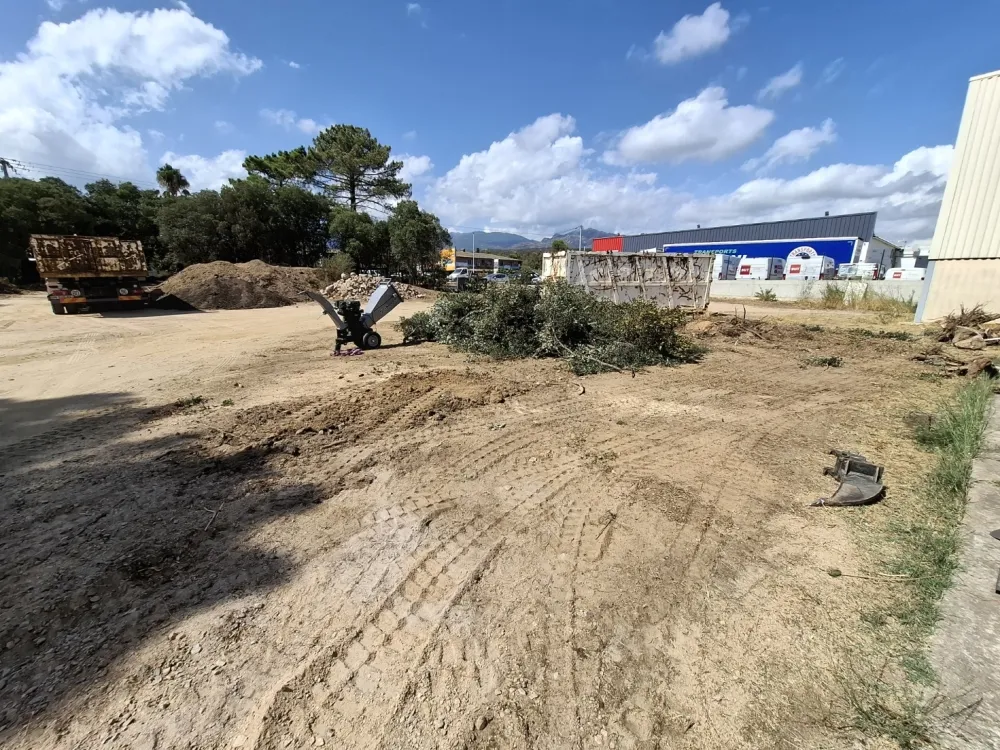 Ce projet comprenait la démolition d'un muret, suivie de l'évacuation des gravats. En parallèle, nous avons procédé à l'abattage d'arbres avec le broyage des branches à l'aide de notre équipement spécialisé, assurant ainsi une évacuation réduite et efficace des déchets verts.
