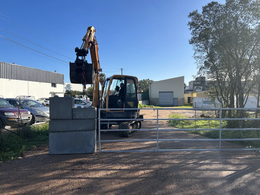 Les bloc-béton type Légo sont conçus pour être amovibles grâce à notre mini pelle de 6 tonnes, ce qui permet une installation et une dépose rapides et sans effort. Leur design emboitable simplifie le montage, sans nécessiter de ciment ou d'enduit, rendant le processus plus propre, plus rapide et surtout modifiable à souhait.